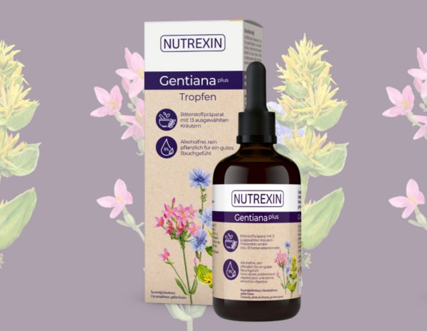 NUTREXIN Gentiana plus ist ein alkoholfreier Nahrungsergänzungsmittel-Extrakt auf Basis ausgewählter Bitterpflanzen. Die Rezeptur kombiniert klassische Bitterkräuter wie Enzian, Wermut, Tausendgüldenkraut, Löwenzahn und Chicorée mit weiteren pflanzlichen Bestandteilen. Die sorgfältig abgestimmte Mischung enthält insgesamt 13 ausgewählte Kräuter und zeichnet sich durch ihren charakteristischen bitteren Geschmack aus.